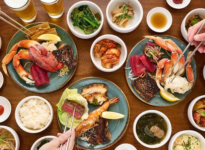 最高のロケーションから眺めるワイキキビーチの絶景を一望しながら、ほかでは体験できないディナーをどうぞ。ハイアット リージェンシー ワイキキ内のレストラン「ザ・ビュッフェ・アット・ハイアット」では、ハワイの新鮮な海と陸の恵みを味わえます。ハワイ近海の新鮮な魚介類、生牡蠣、シュリンプカクテル、寿司からデザートまで、自慢の多彩なラインナップ。シーフードのみならず、焼きたてのカルビやプルコギ、ビビンバなどの韓国料理も楽しめるのが魅力。「ザ・ビュッフェ・アット・ハイアット」では、ハワイの食材を心ゆくまで堪能できます。